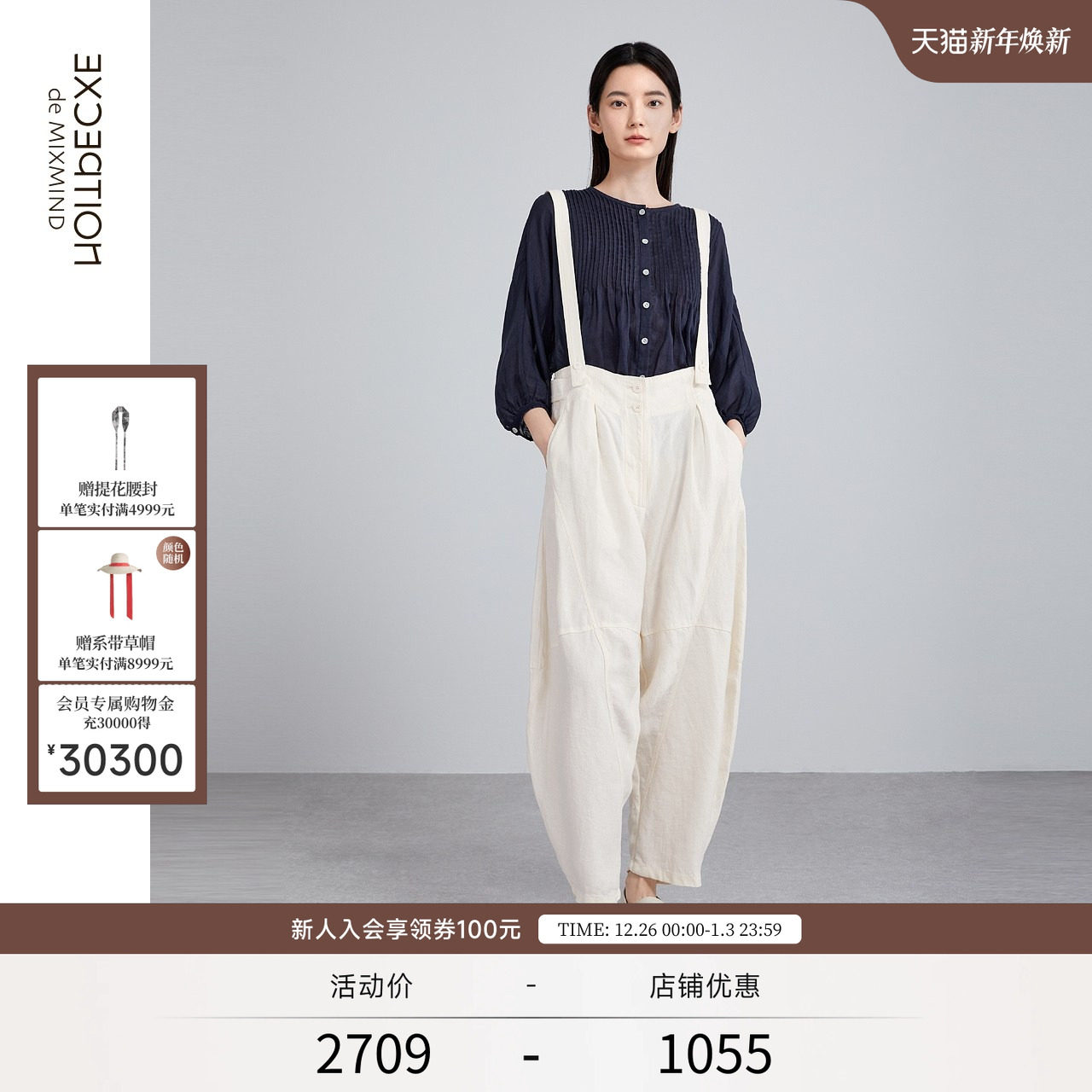 EXCEPTION例外女装春夏款裤子听风亚麻可拆卸背带宽松长裤女裤