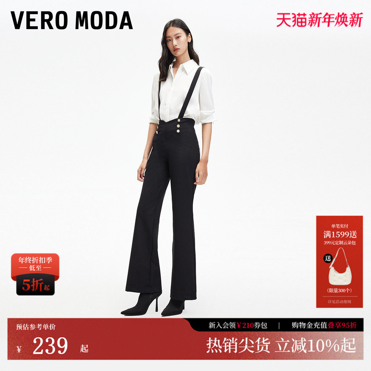 Vero Moda休闲裤女2025夏季新款高腰背带可拆卸休闲裤复古时尚