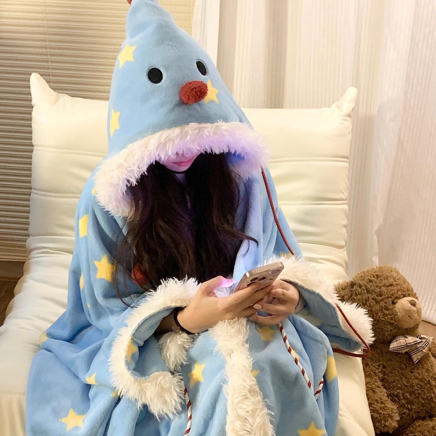 侘町2024年新款圣诞雪人法兰绒睡袍女秋冬款可外穿家居服斗篷睡衣