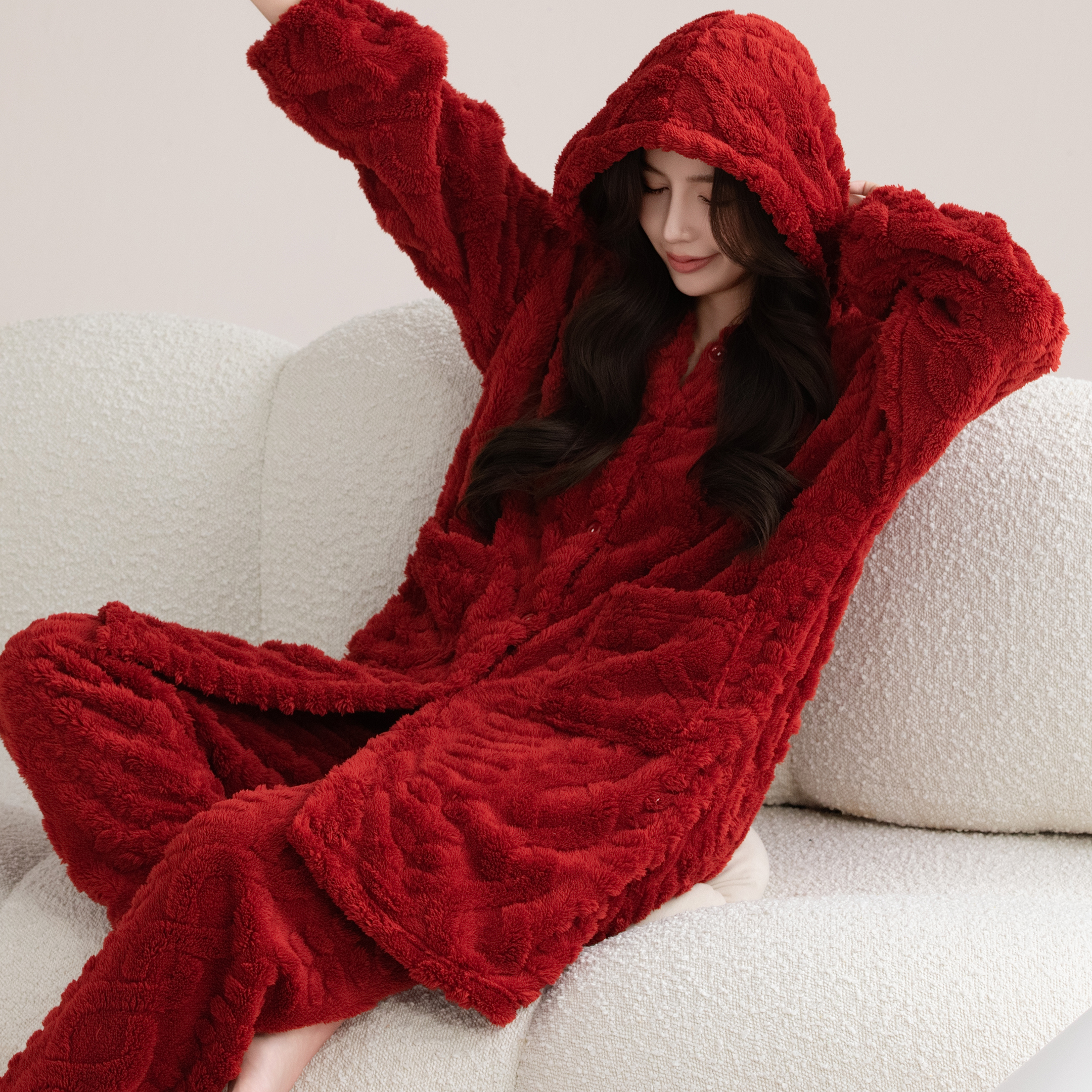 〖糯米小汤圆〗简约睡衣女款秋冬季2025新款加厚法兰绒家居服睡袍