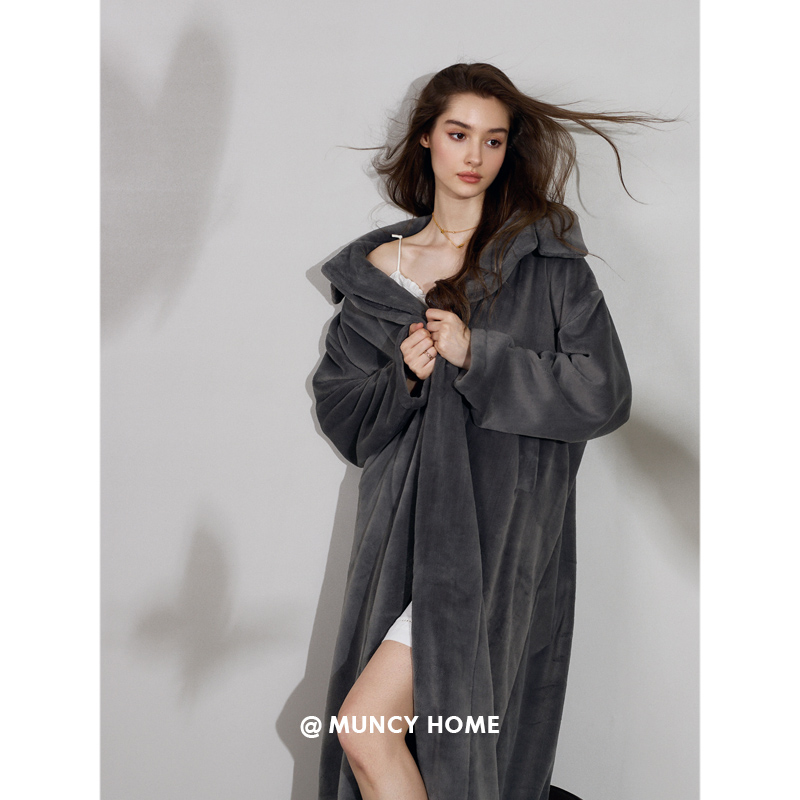 曼系“护脖暖暖袍”静奢大气法兰绒睡袍女秋冬季韩系时尚宽松睡衣