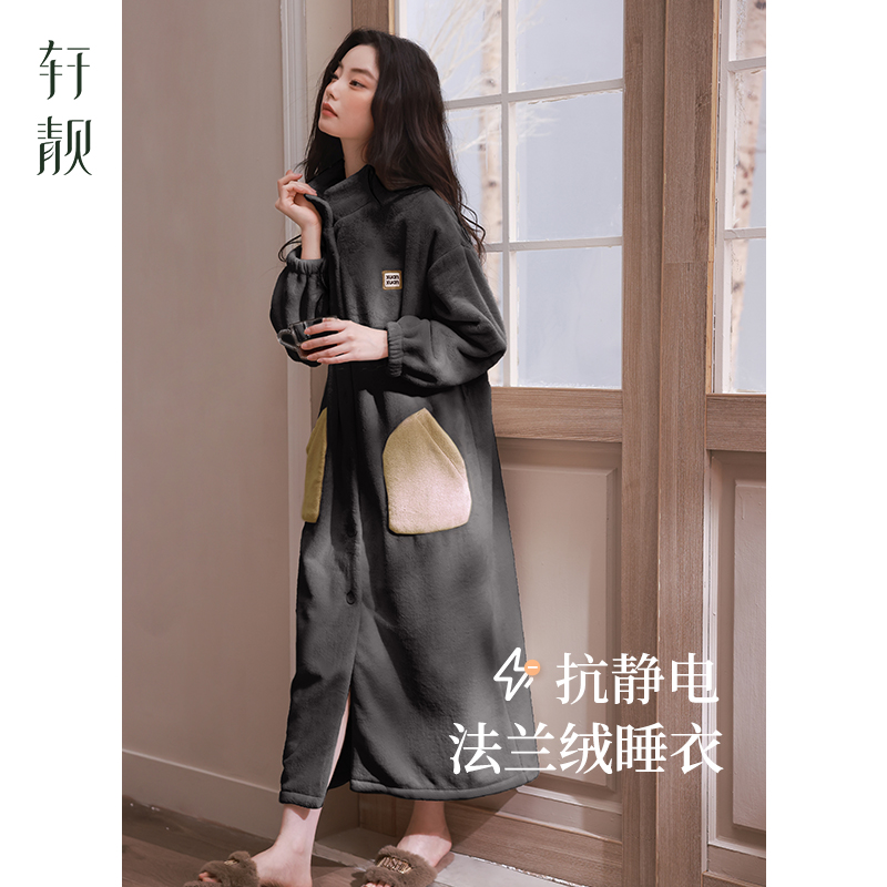 轩靓【抗静电】法兰绒睡袍女冬加绒加厚睡衣睡裙可外穿浴袍家居服