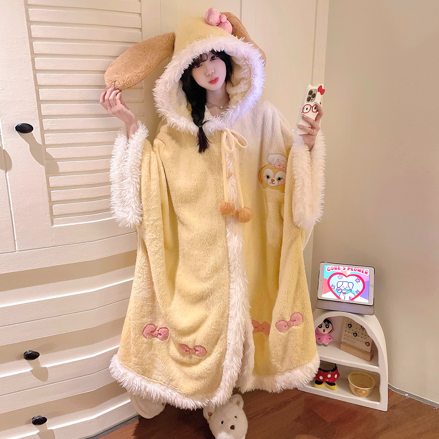 侘町2025新款轻松熊斗篷加厚法兰绒睡袍女冬季卡通家居服保暖睡衣