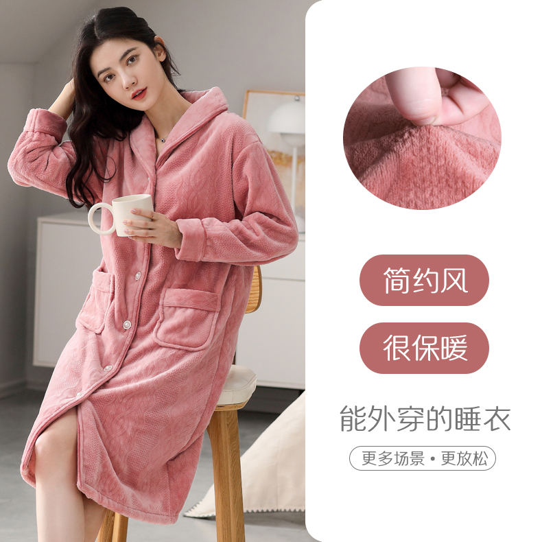 冬天法兰绒睡袍女士睡衣浴袍秋冬季长款加厚加绒珊瑚绒睡裙家居服