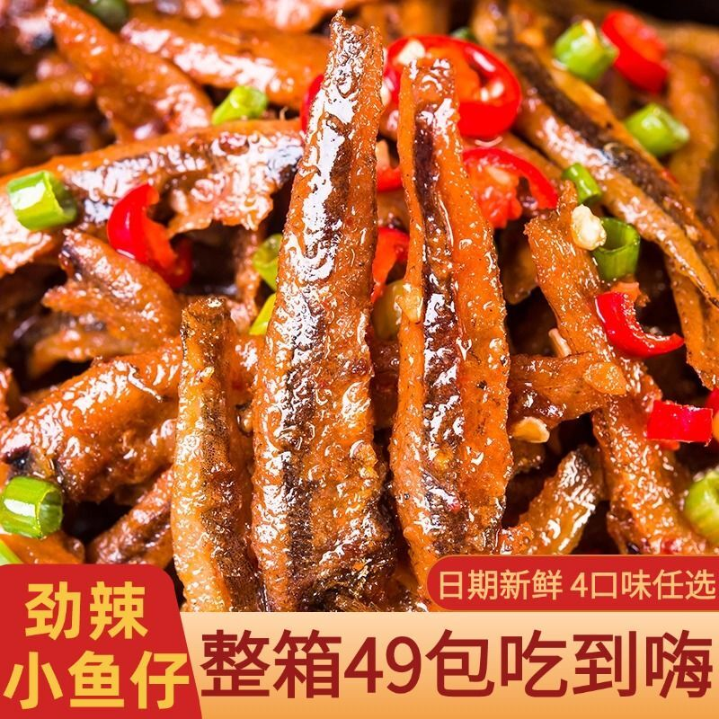 【整箱120包】香辣小鱼仔零食湖南特产小鱼干休闲麻辣小吃批发2包