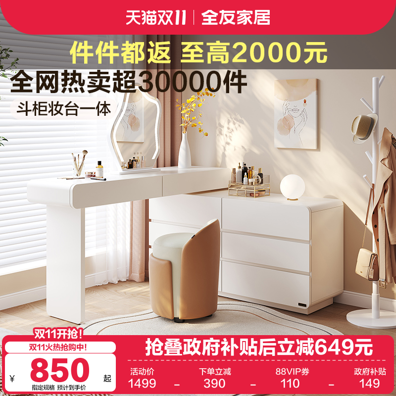 2025新款小户型梳妆台卧室现代简约收纳柜斗柜一体小型实木化妆桌
