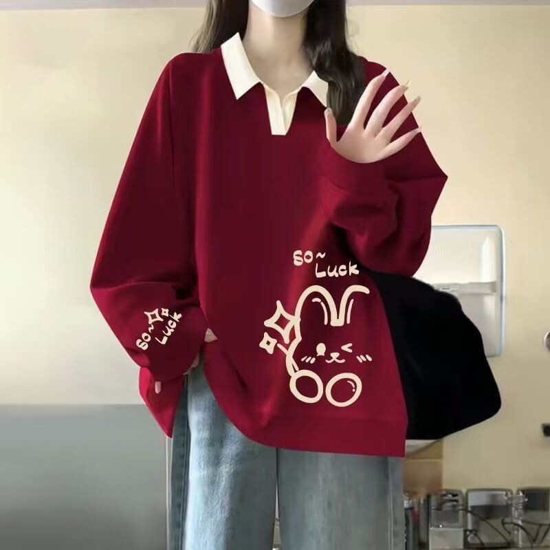 春秋新款韩版美式撞色polo领长袖卫衣女ins潮流宽松上衣外套学生