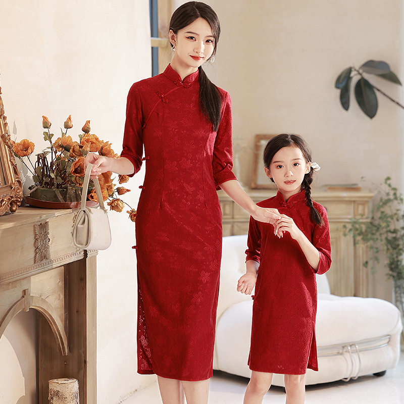 - 旗袍针织连衣裙