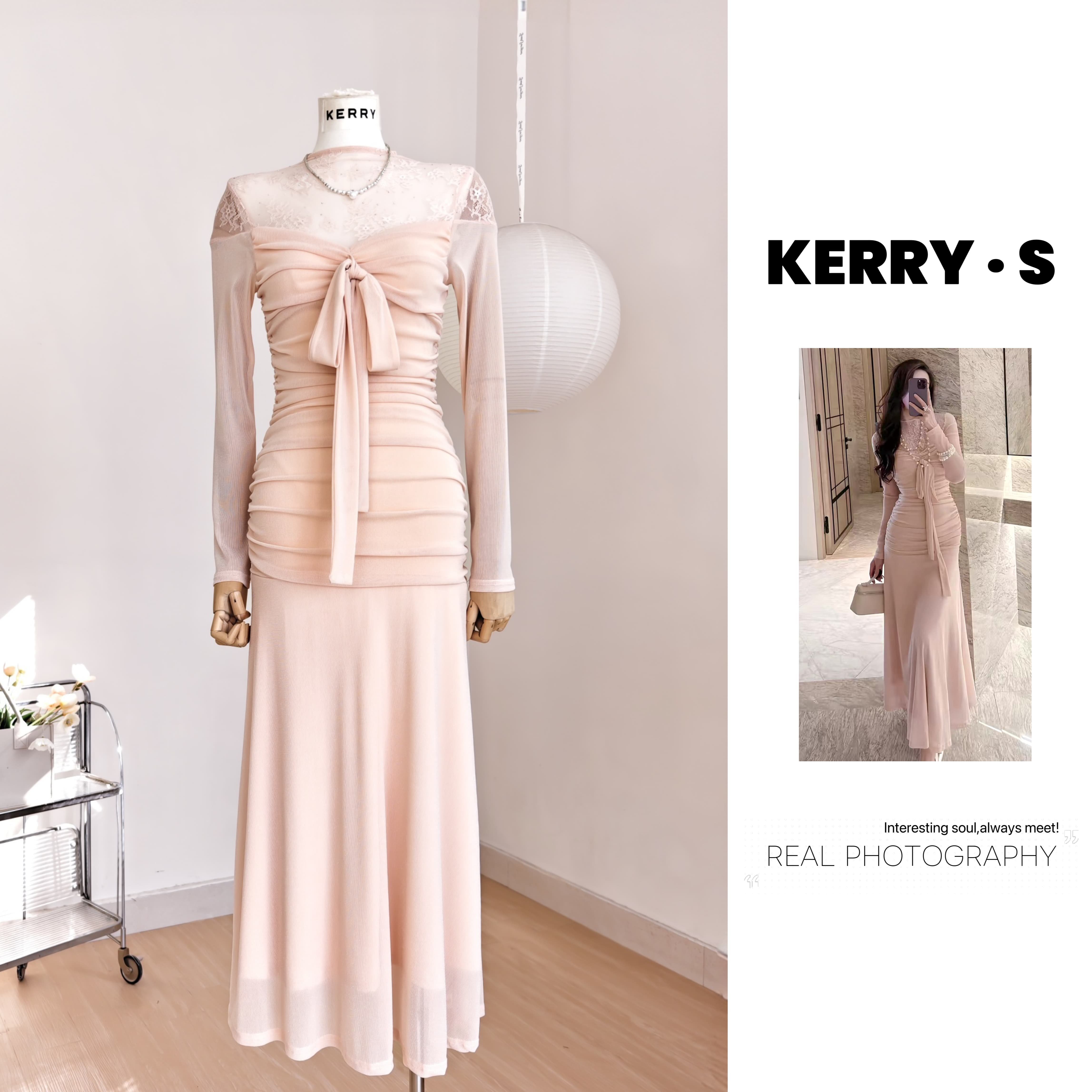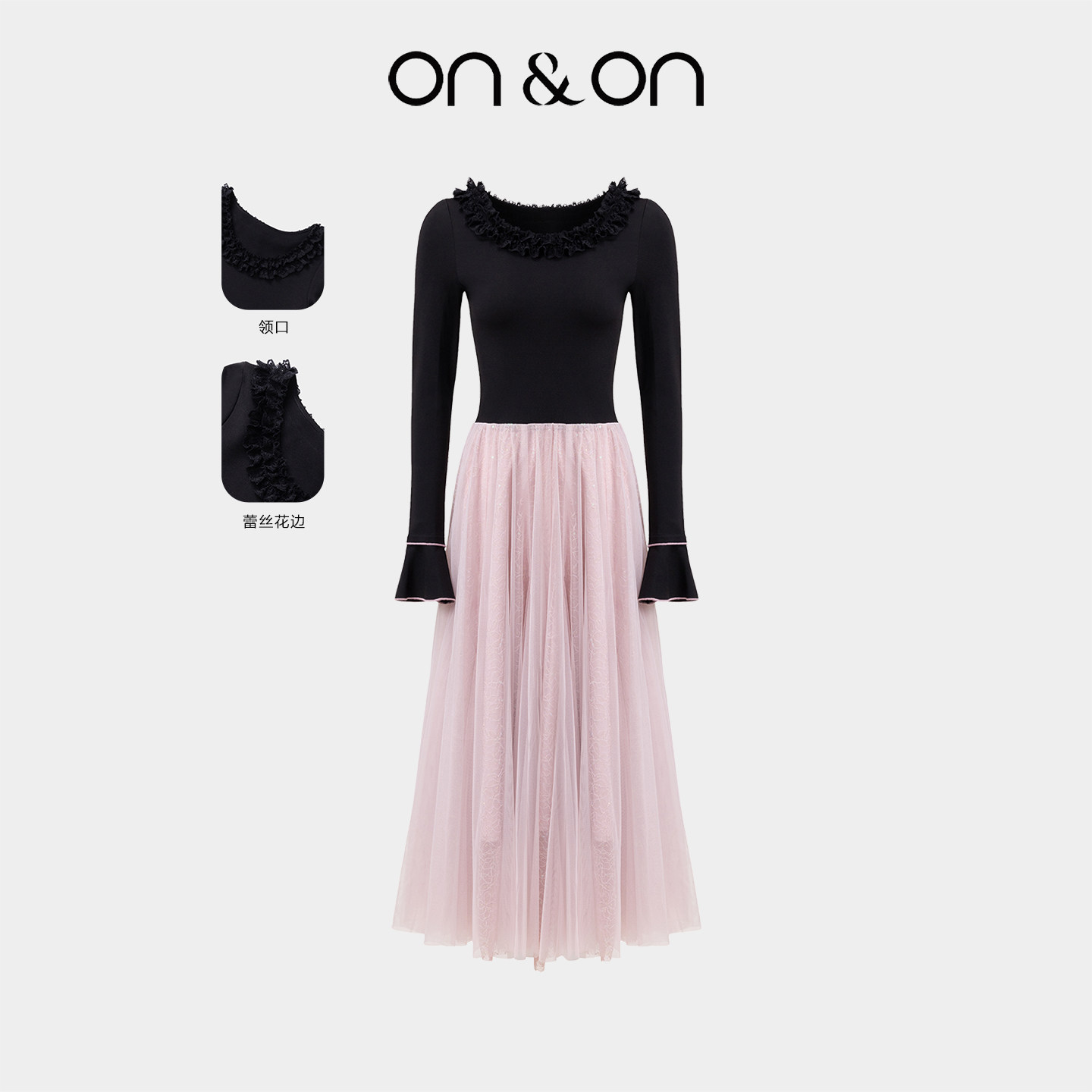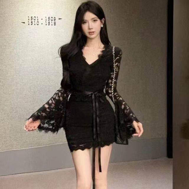 - 蕾丝连衣裙喇叭袖长袖