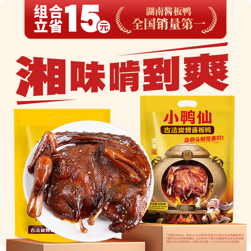 小胡鸭锁鲜装全鸭450g香酥鸭香辣酱板鸭零食休闲小吃新鲜现做追剧
