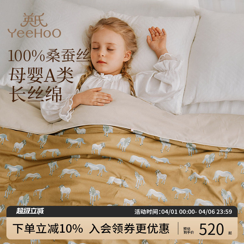 英氏母婴A类婴儿童凉感100桑蚕丝被空调被幼儿园夏凉被儿童蚕丝被