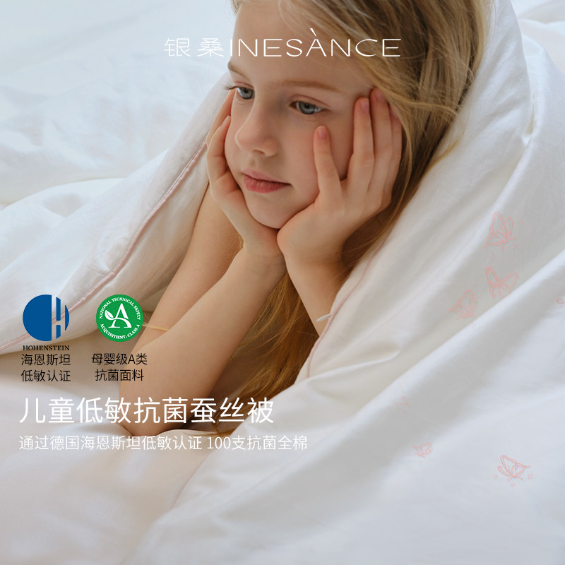 银桑INESANCE婴儿宝宝100%桑蚕丝被儿童幼儿园秋冬四季小被子a类
