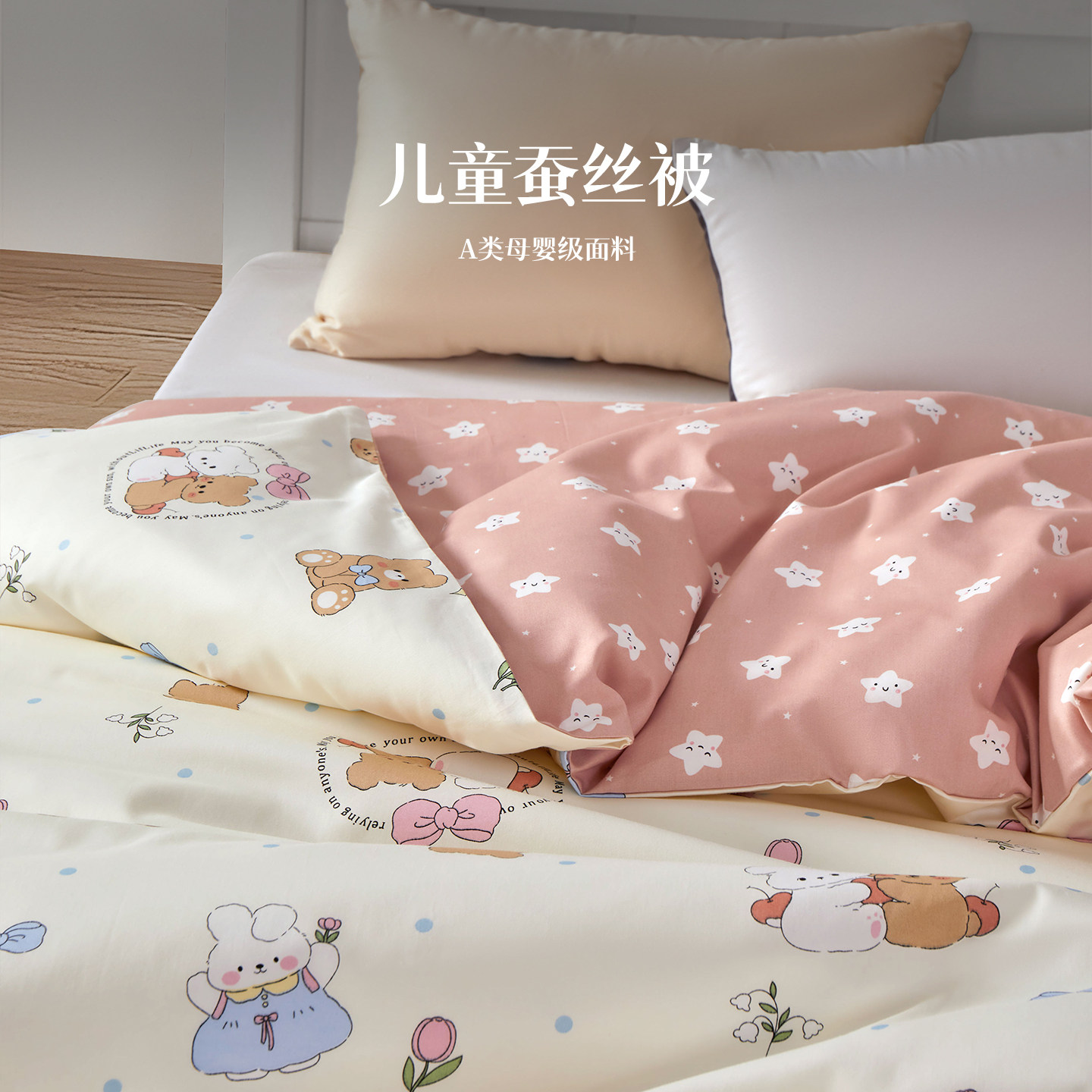 罗莱儿童A类100%蚕丝夏凉被卡通儿童幼儿园可水洗机洗四季空调被