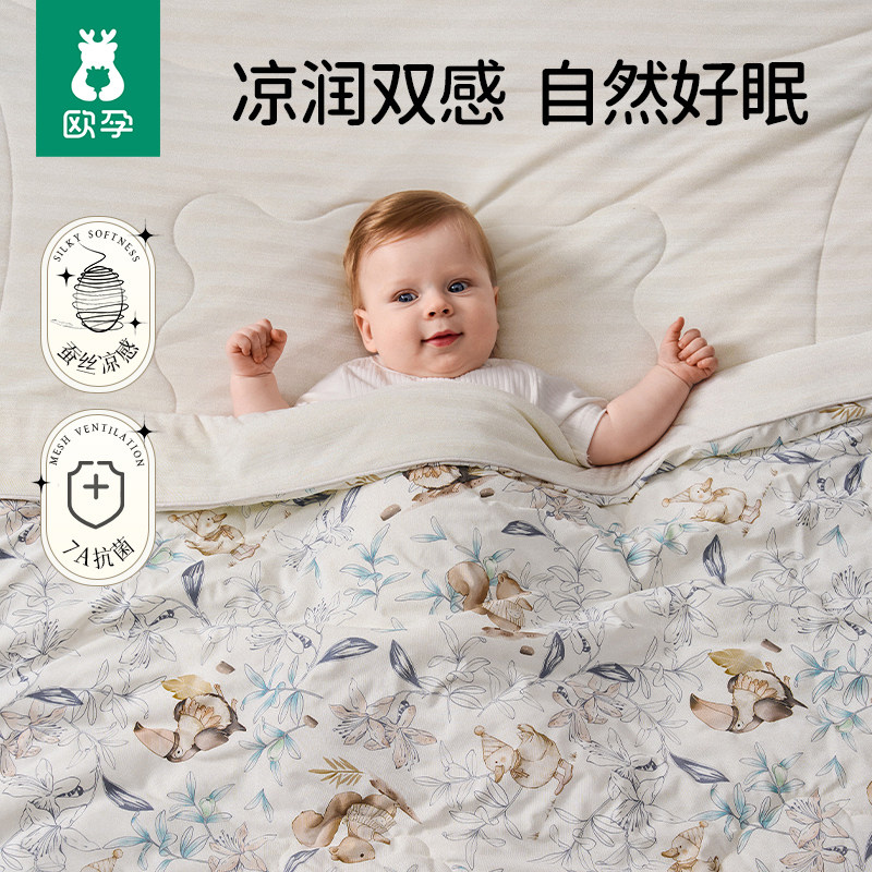 欧孕婴儿蚕丝夏凉被幼儿园宝宝儿童凉感被空调被婴儿专用盖毯四季