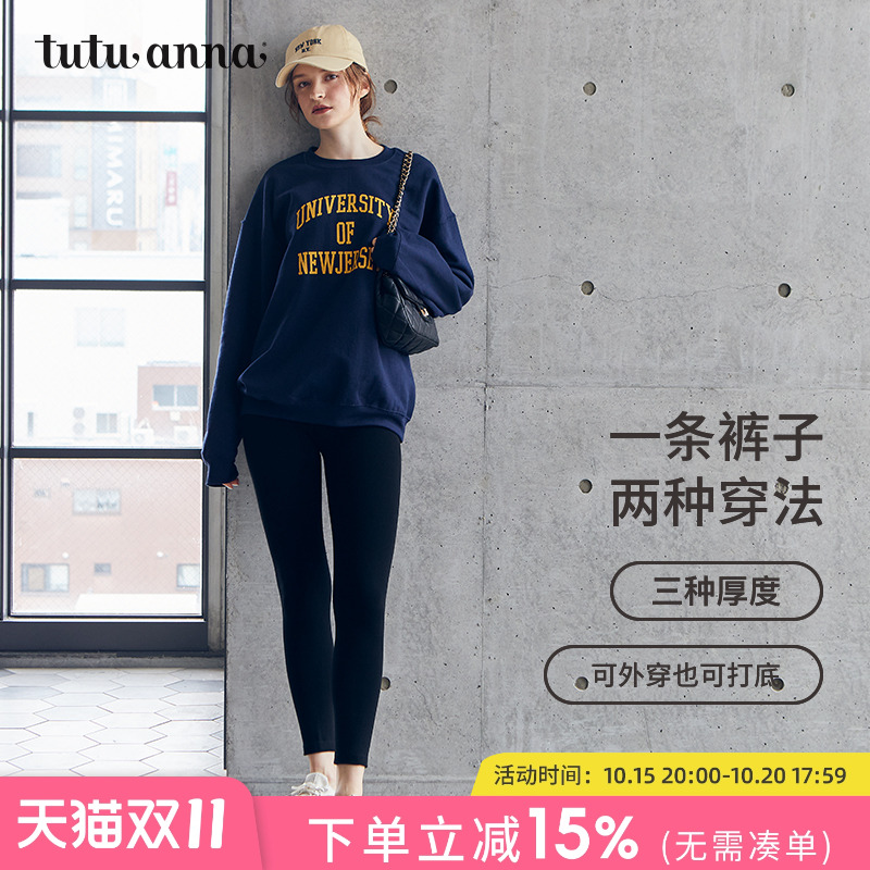 tutuanna秋冬女士加绒加厚打底袜 250D可外穿修身显瘦纯色打底裤