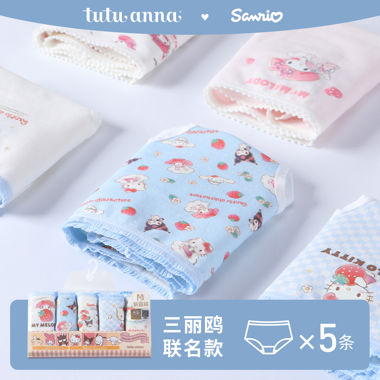 tutuanna中腰内裤女 全棉裆透气三角内裤五条装三丽鸥联名内裤女