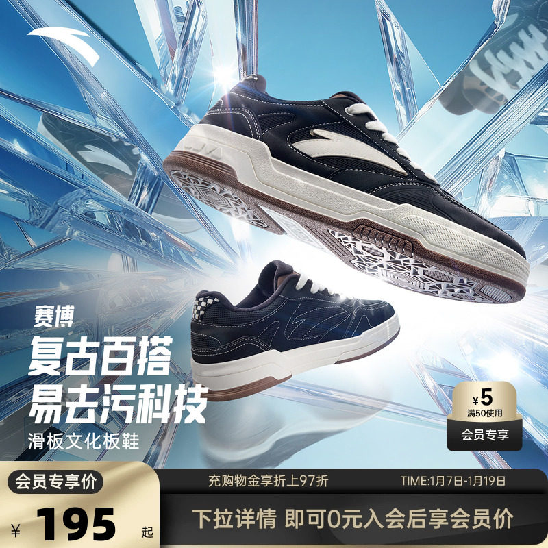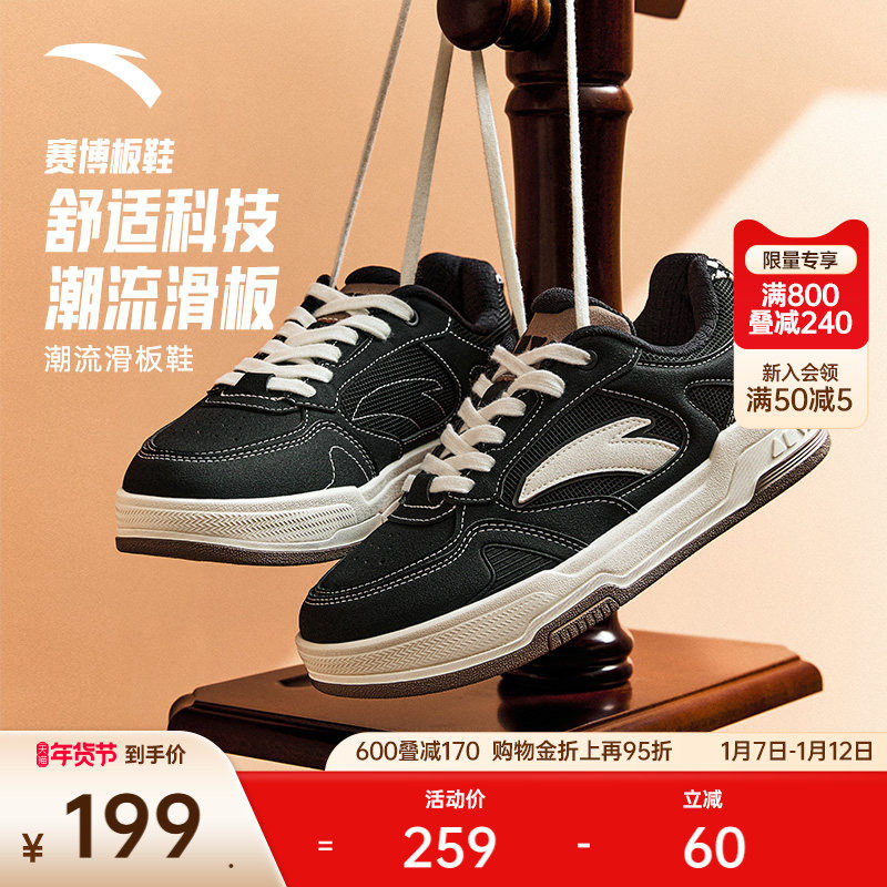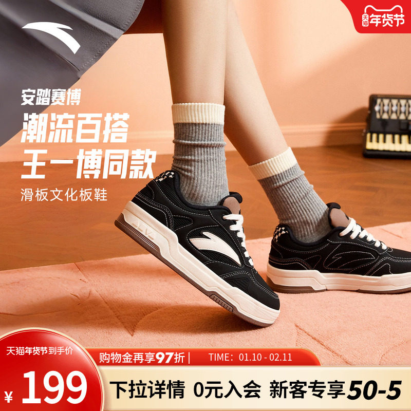 【王一博同款】安踏赛博低帮黑白板鞋女鞋百搭小白鞋情侣运动鞋子