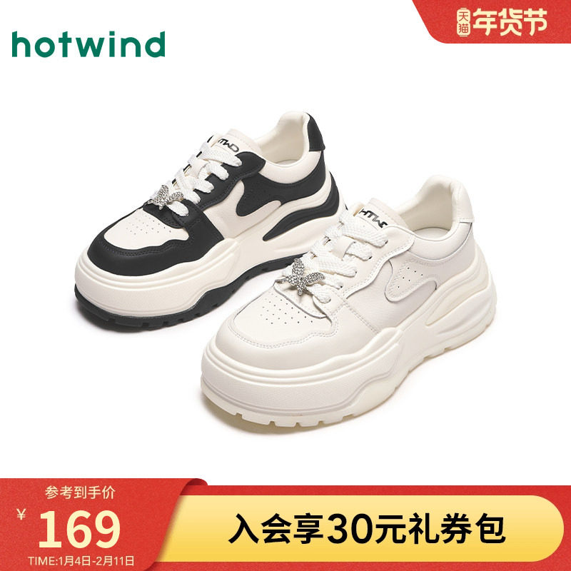 热风松糕厚底小白鞋女款2025年冬季新款水钻蝴蝶百搭休闲黑白板鞋