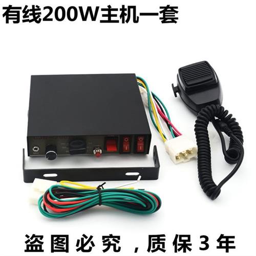 汽车警报器车载有线 线主机带喊话器200W瓦警报器多音喇叭12V24v