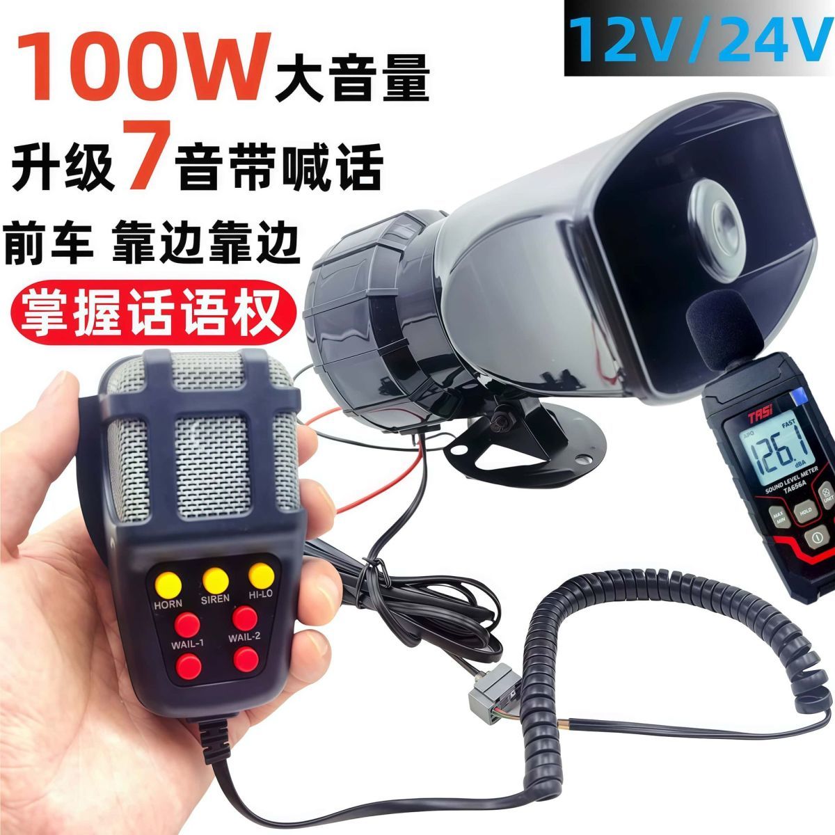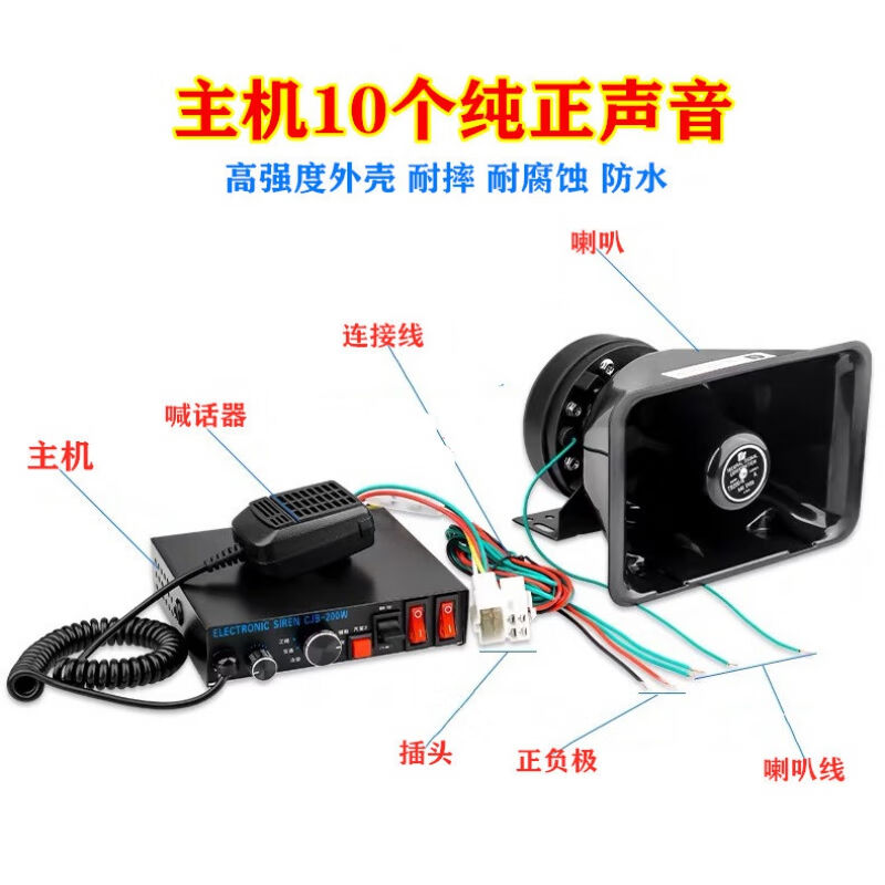 车载警报有线主机带喊话器200W多音喇叭汽车喇叭货车12V24v改装用