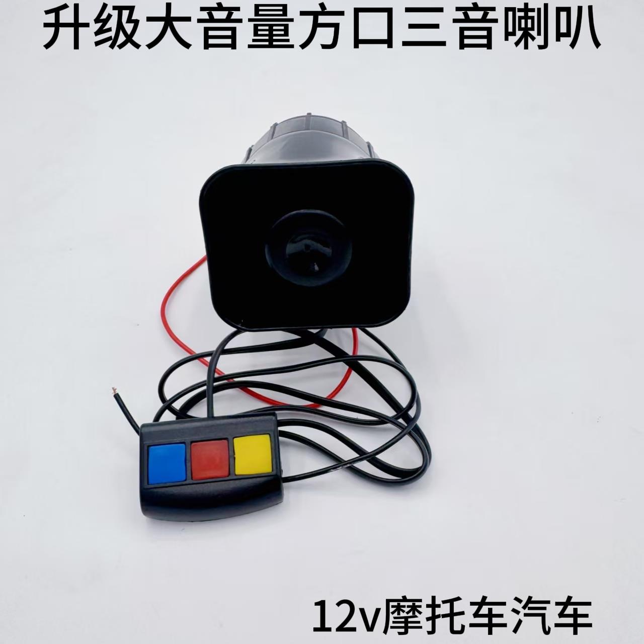 汽车机车12v车载三音警报喇叭3音扩音器滑板车 30w改装多音喇叭