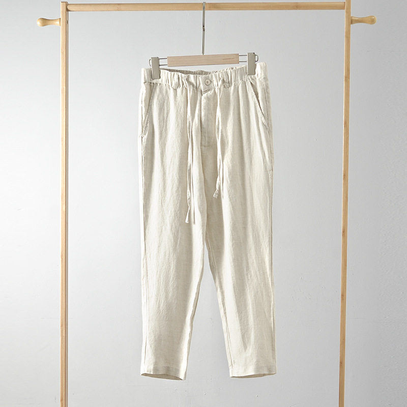 2024新款亚麻裤 男式透气休闲九分裤 清新日常小直通裤C006