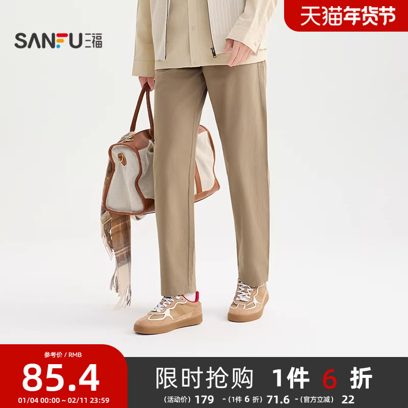 三福2025秋冬新款休闲裤男亚麻直筒简约通勤修身长裤裤子507839