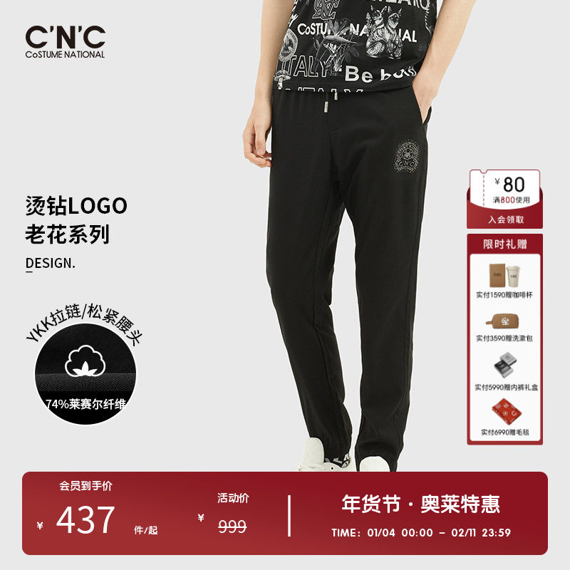 【天丝+亚麻 透气舒适】CNC男装奥莱春秋卫裤潮流烫钻休闲裤男