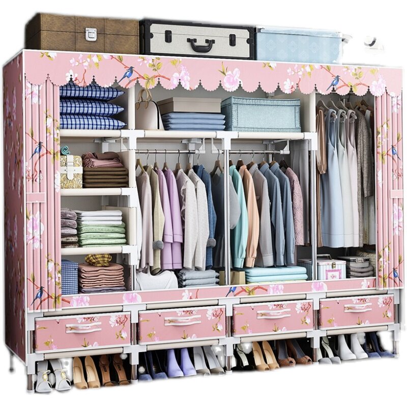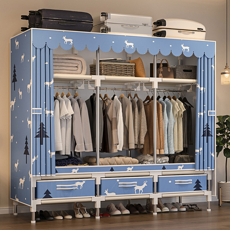 简易不锈钢管布艺衣柜螺丝组装加粗加固双人单人衣橱家用挂衣柜架