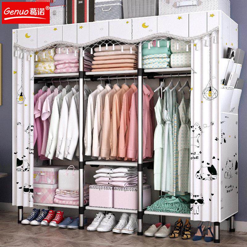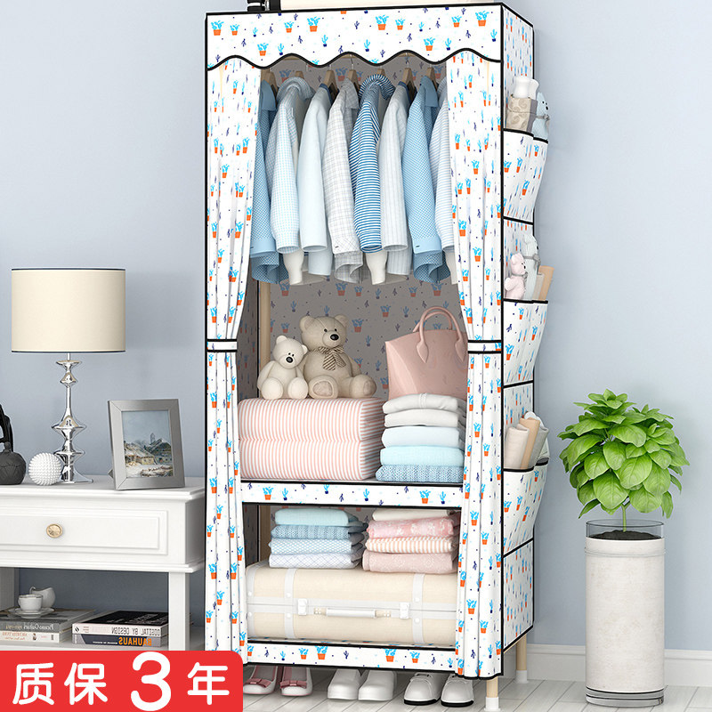 布衣柜简易布艺实木出租屋儿童单人组合折叠组装塑料双人大小宿舍