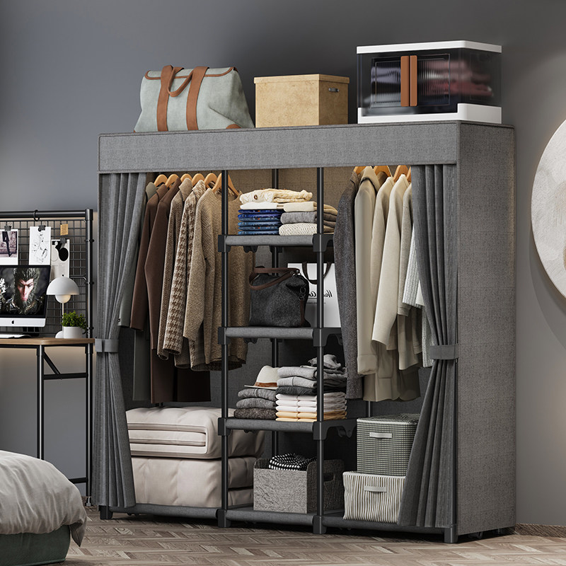 简易衣柜钢管BWU粗加固厚布艺大中号单人收布纳架双挂出租房家用