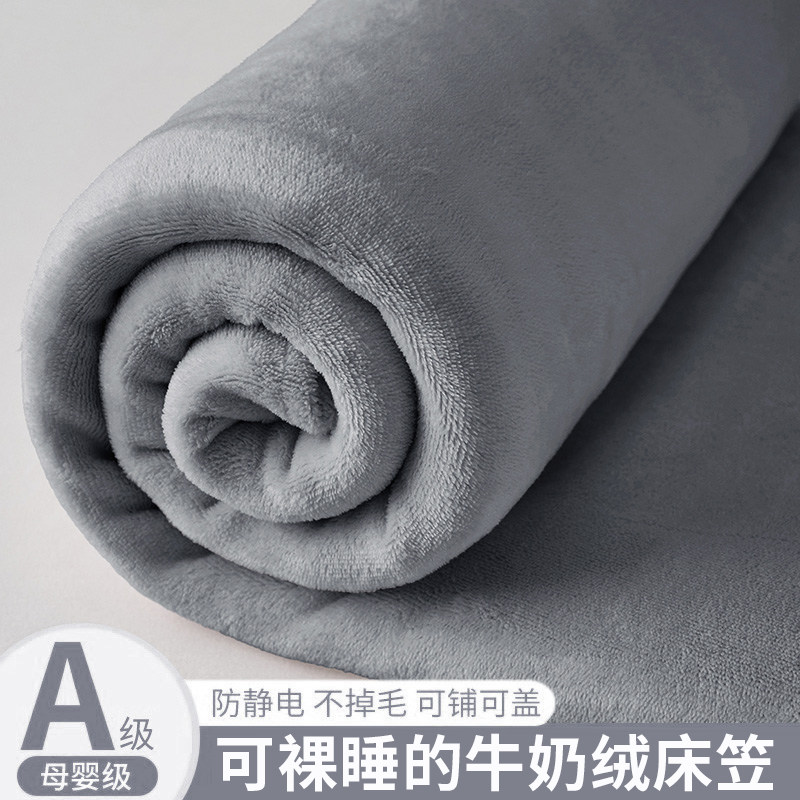 冬季保暖加厚牛奶绒床笠单件 A类珊瑚绒床罩防静电加绒床单三件套