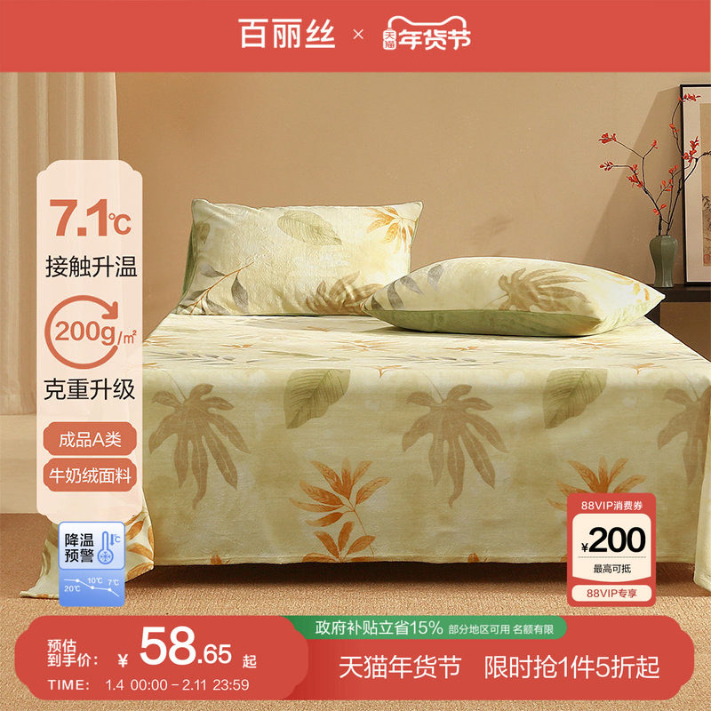 百丽丝家纺牛奶绒床单保暖加绒床单秋冬新品加厚冬天学生宿舍床单