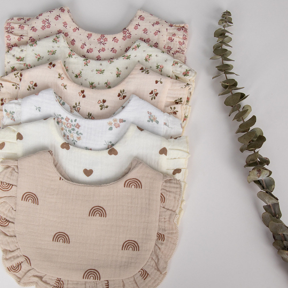 跨境新款婴儿荷叶边口水巾 纯棉纱布花边围嘴围兜ins风口水兜
