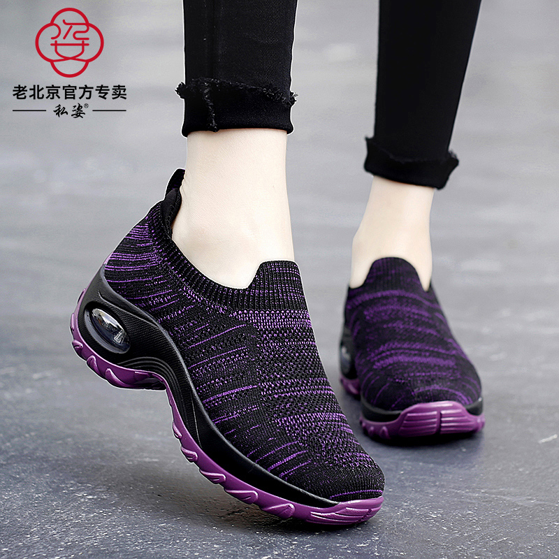 老北京布鞋女秋季厚底休闲运动鞋一脚蹬妈妈摇摇鞋女士软底懒人鞋