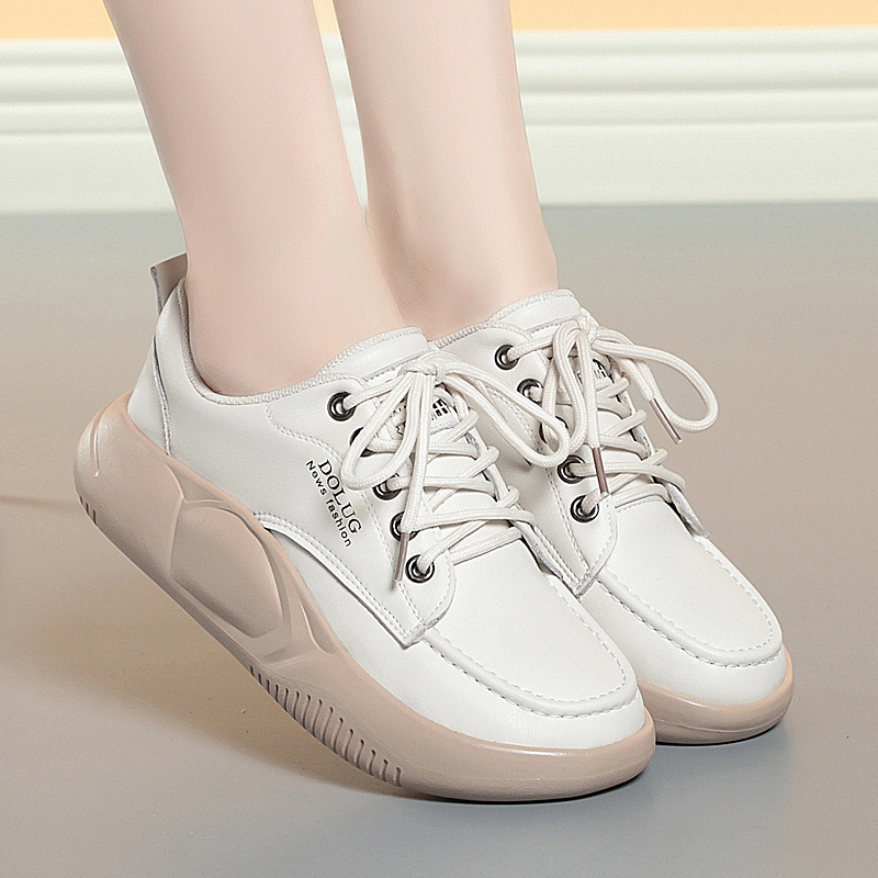 大牌真皮厚底小白鞋2025春秋季新款休闲鞋学院风百搭运动鞋摇摇鞋
