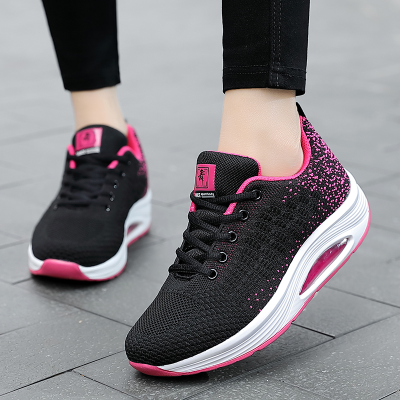 女鞋运动鞋2024春秋季新款气垫厚底增高飞织透气旅游鞋休闲摇摇鞋