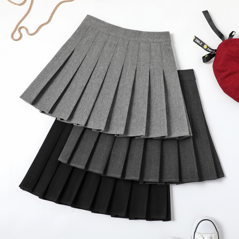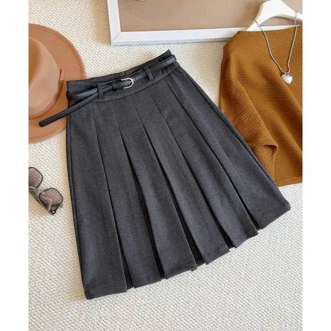 灰色女呢子百褶秋季显瘦半身裙防走光学院风毛呢A字新款高腰中裙