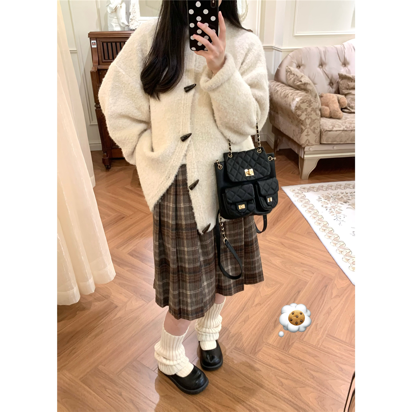 【现货4折】咖喱汤汤TGL【爆款半裙】高腰加厚波点百褶呢子半裙女