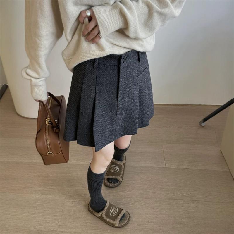 依陌茜高腰短裙女2025秋冬加厚百褶裙显瘦呢子A字裙百搭半身裙子