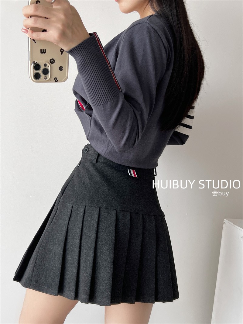 TB百褶裙秋冬新款加厚呢子半身裙高腰百搭A字防走光学院风短裙潮