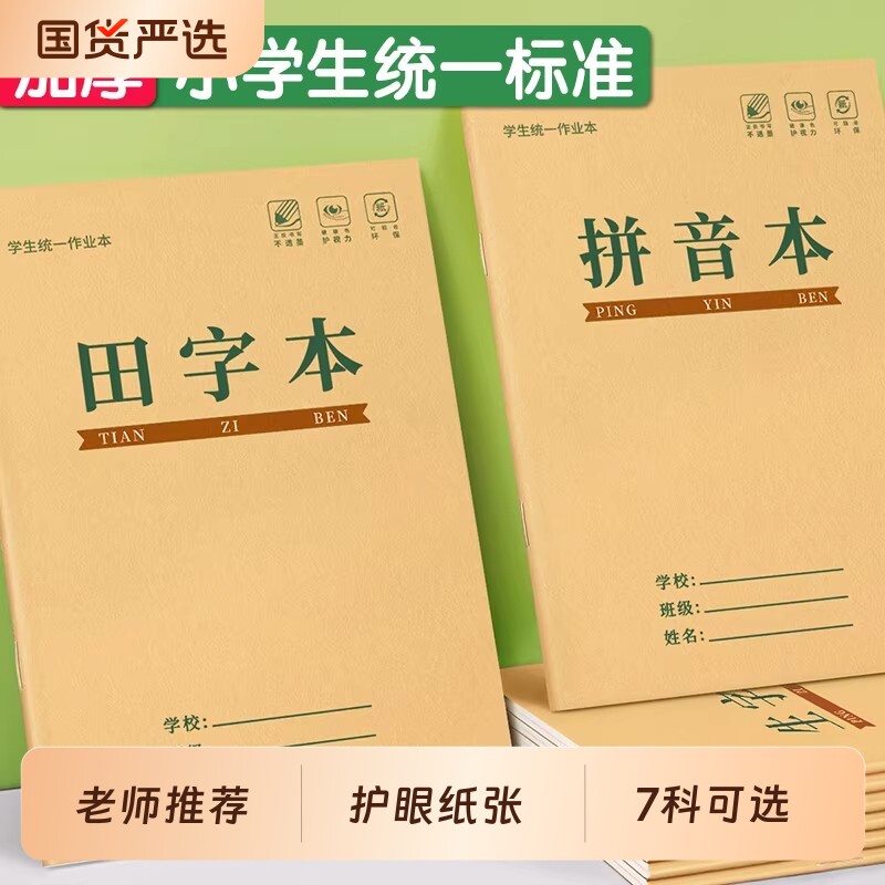 16K生字本小学生作业本汉语拼音本牛皮纸大号作业本幼儿园学前班一年级专用拼音田字格本拼音本田字本写字本