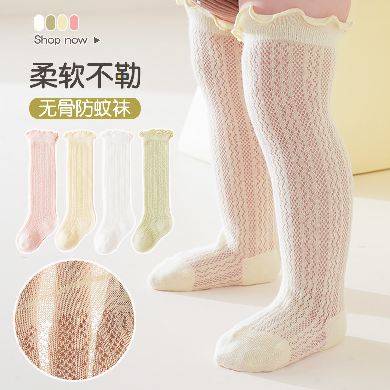 宝宝袜子长筒夏季超薄棉袜网眼婴儿松口防蚊防晒过膝不勒腿空调袜