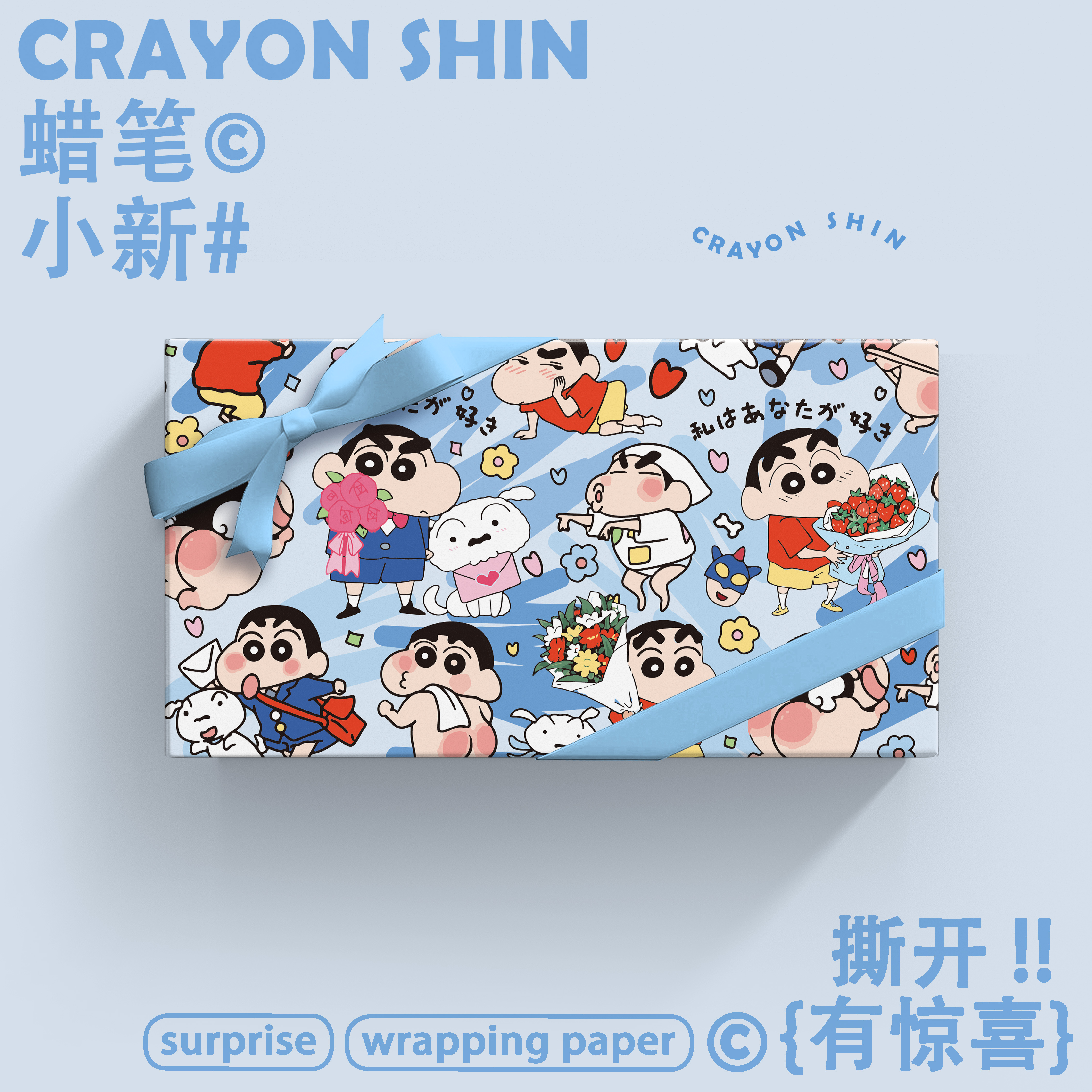 蜡笔小新包装纸大尺寸diy生日礼物礼品盒包书皮纸可爱卡通动漫人物涂鸦打包花束包装皮纸高级感精美材料素材