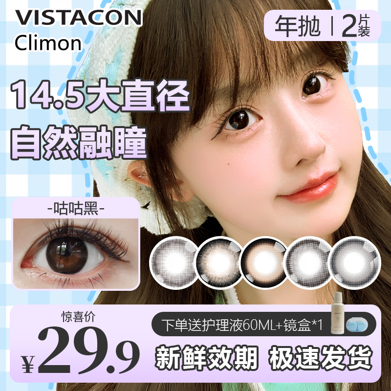 送护理液镜盒】大直径年抛14.5mm大眼女孩美瞳2片隐形自然咕咕黑