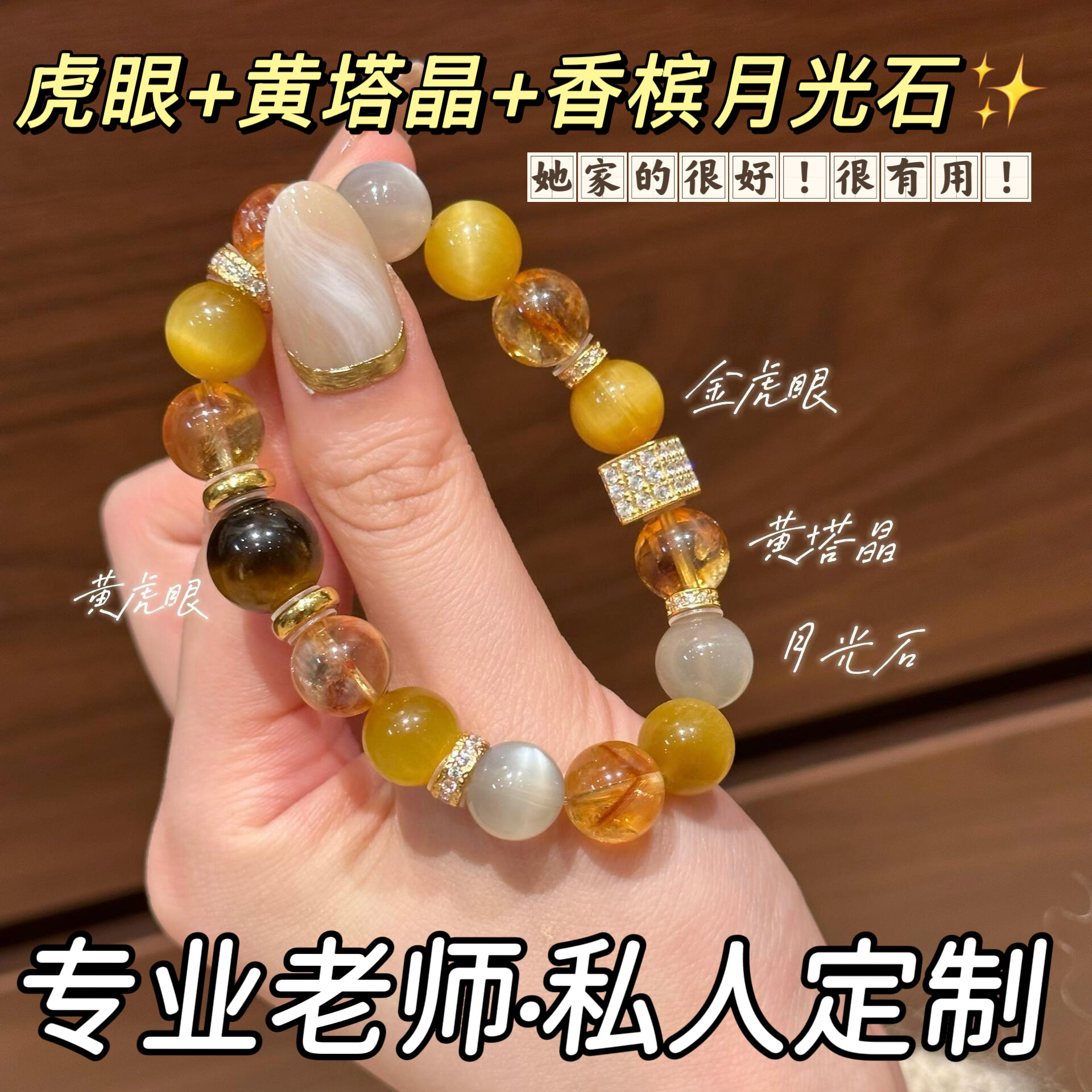 天然水晶转运珠手串女招米黄塔晶茶水晶复古手饰虎眼石月光石手链