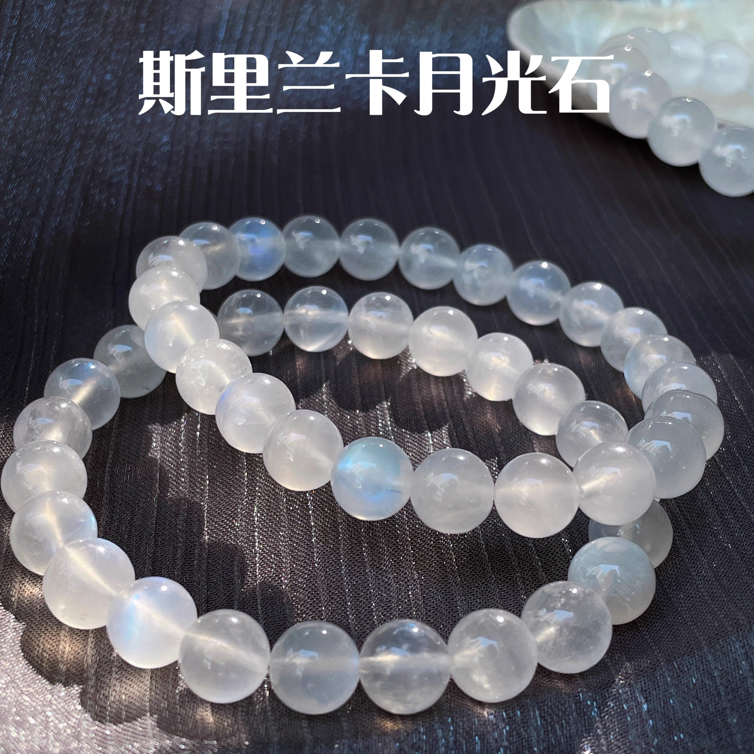PLSTONE普琳丝天然斯里兰卡冰种玻璃体强蓝光白月光石手链女手串