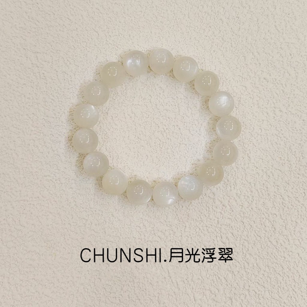 CHUNSHI「月光浮翠」新中式原创天然灰绿月光石手链手串素圈饰品