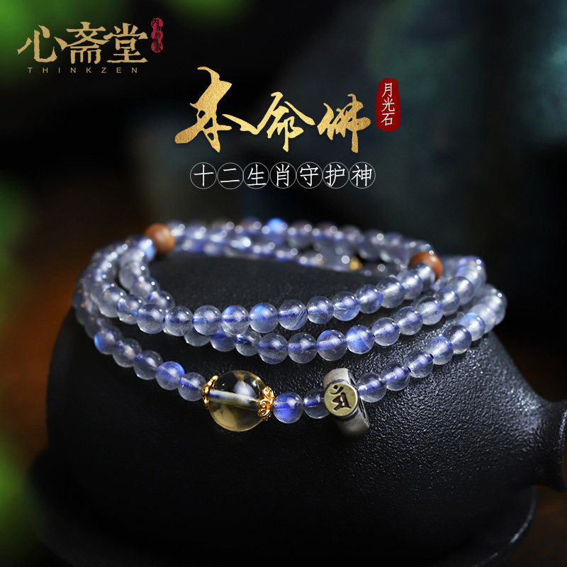 心斋堂【大愿】天然月光石手链女本命年原创设计佛珠手串饰品马年