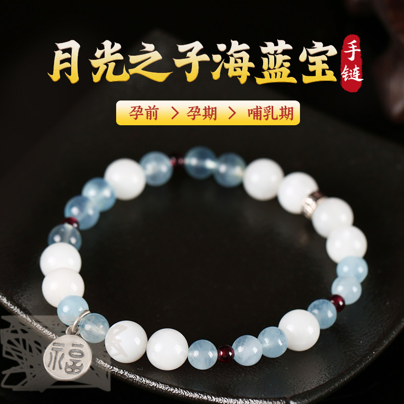 天然月光石手链海蓝宝水晶手串生日礼物送女朋友闺蜜轻奢礼盒装男